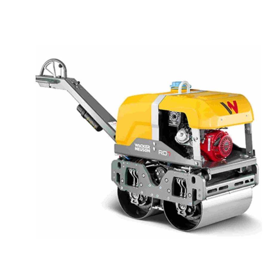 El rodillo vibratorio doble de conducción manual RD7 ofrece un rendimiento excelente tanto en la compactación del suelo como del asfalto, gracias a la frecuencia adaptada de forma óptima y a dos niveles de vibración. El rodillo impresiona por sus elementos de control de distribución ergonómica, como por ej. el ajuste del número de revoluciones del motor montado directamente en la barra de mando. El acceso sencillo y sin herramientas a todos los puntos de servicio también convierten el RD7 en una solución sencilla y económica en cada obra.